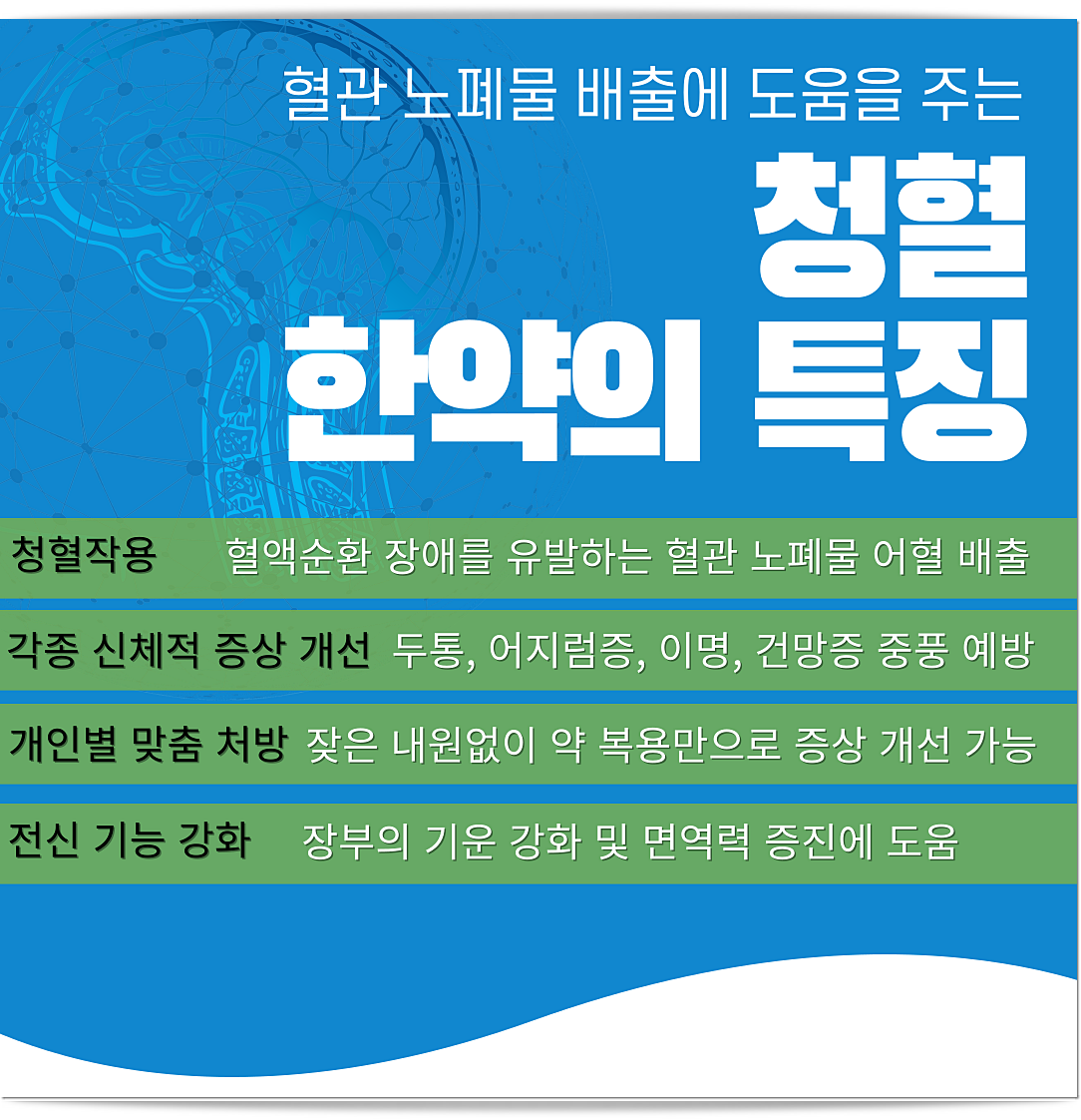 먼저 처방되는 한약은 청혈 작용을 하는 치료약으로 혈관 속 노폐물을 배출시키고 탁한 혈액을 맑게 해줍니다. 건강한 혈액이 원활하게 순환하면 어지럼증은 점차 완화되며, 혈류 장애로 발생할 수 있는 다른 신체적 증상들 또한 자연스럽게 개선이 되죠. 전신 순환이 안정되는 만큼 신체 전반의 기운이 회복되는 것을 느끼실 수 있죠.
