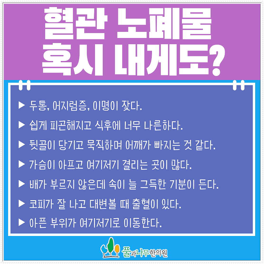 대구 지산동한의원 풀과나무한의원에서는 잦은두통의 원인을 머릿속 대사 피로물질인 어혈, 수독, 담음, 열독 등에 의한 뇌혈류 장애와 불안정한 뇌압에서 찾고 있습니다.