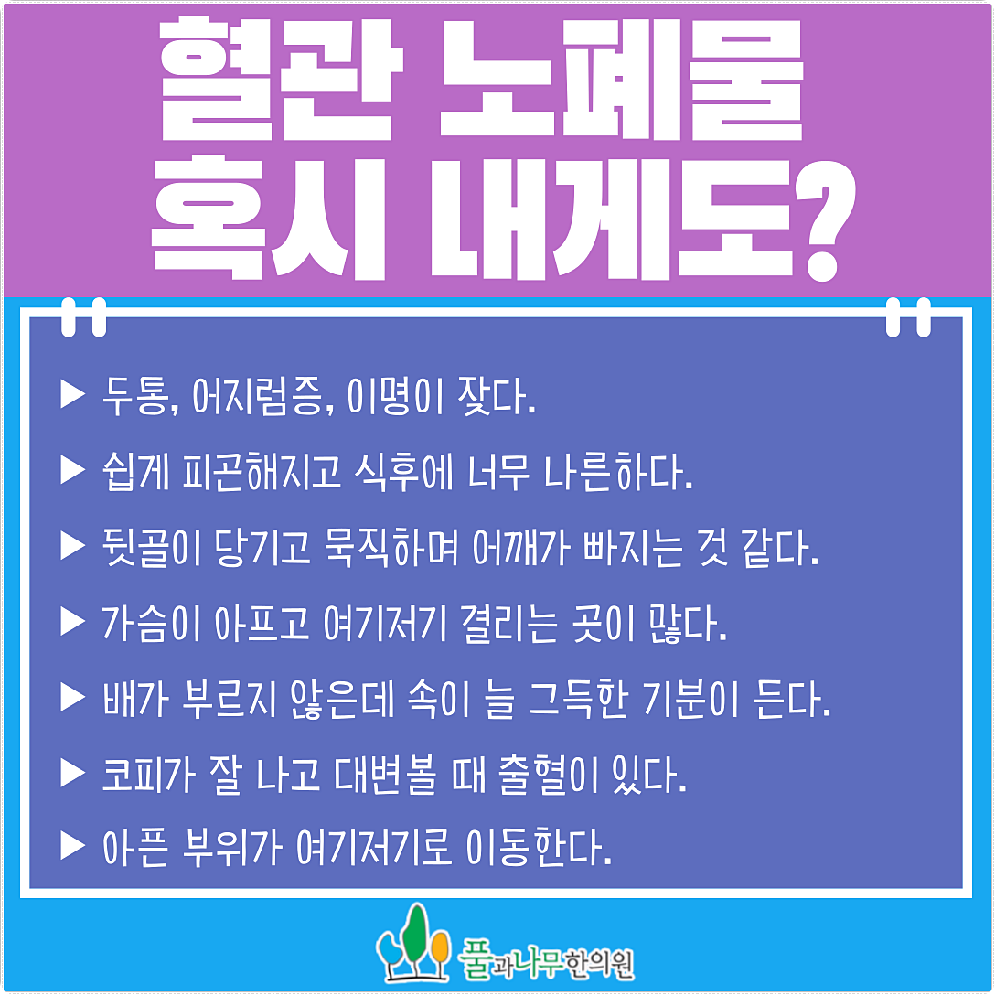 피로물질은 혈액을 타고 돌면서 전신에 불편함을 일으킵니다. 특히 피로물질에 의한 뇌혈류 장애는 뇌에 충분한 산소와 영양소의 공급을 방해하고 뇌압을 불안정하게 합니다. 이 과정에서 머리가 지끈지끈거리게 되는 것이죠.