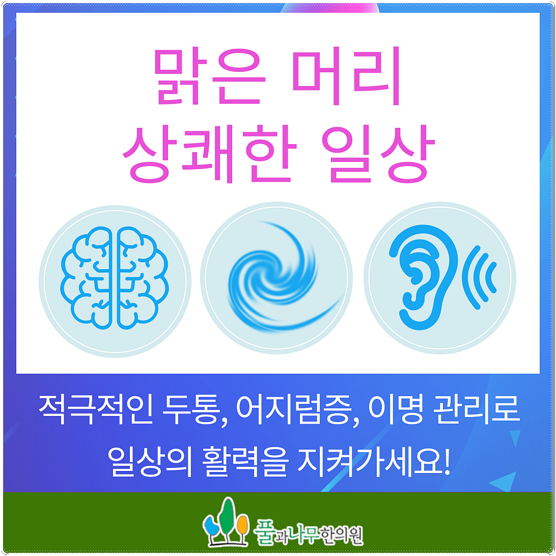 한방에서는 몸 전체의 조화와 균형 회복을 목표로 치료를 진행합니다. 이를 통해 막힌 기혈 순환을 풀어 자율신경의 균형을 회복하고, 담과 열을 내려 두부의 혼탁함을 완화합니다. 또한 체내 노폐물을 배출시켜 순환을 개선하고 체질을 강화해 재발을 방지합니다.