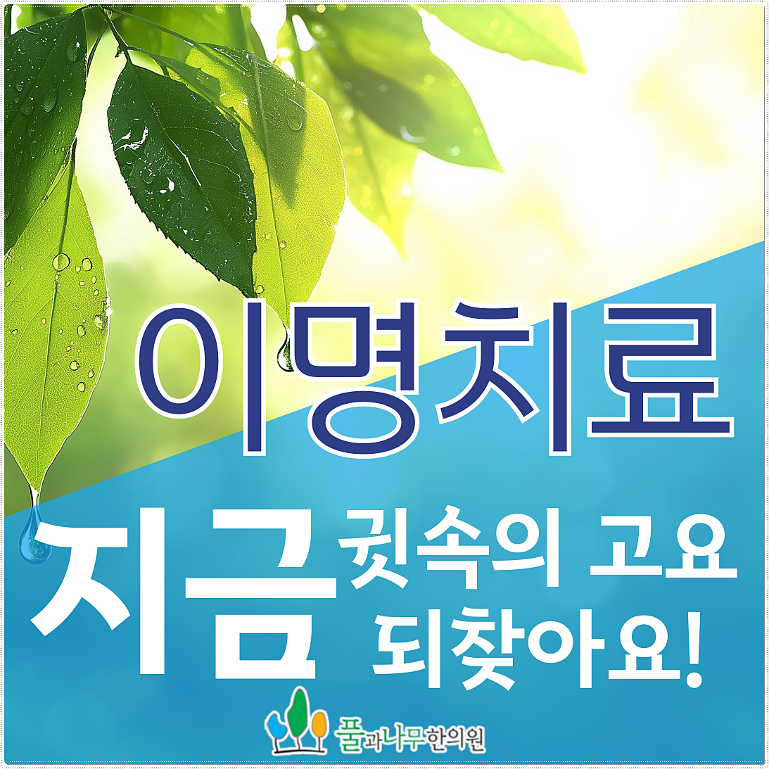 이명을 잘 다스리는 핵심은 원인을 바로잡고, 신경계의 과민 반응을 진정시키며, 재발을 방지할 수 있는 순환 구조를 회복하는 것에 있습니다. 이명으로 인해 마음까지 지치고 있다면 더 이상 망설이지 말고 이명 개선을 위한 첫걸음, 내딛어 보시기 바랍니다.