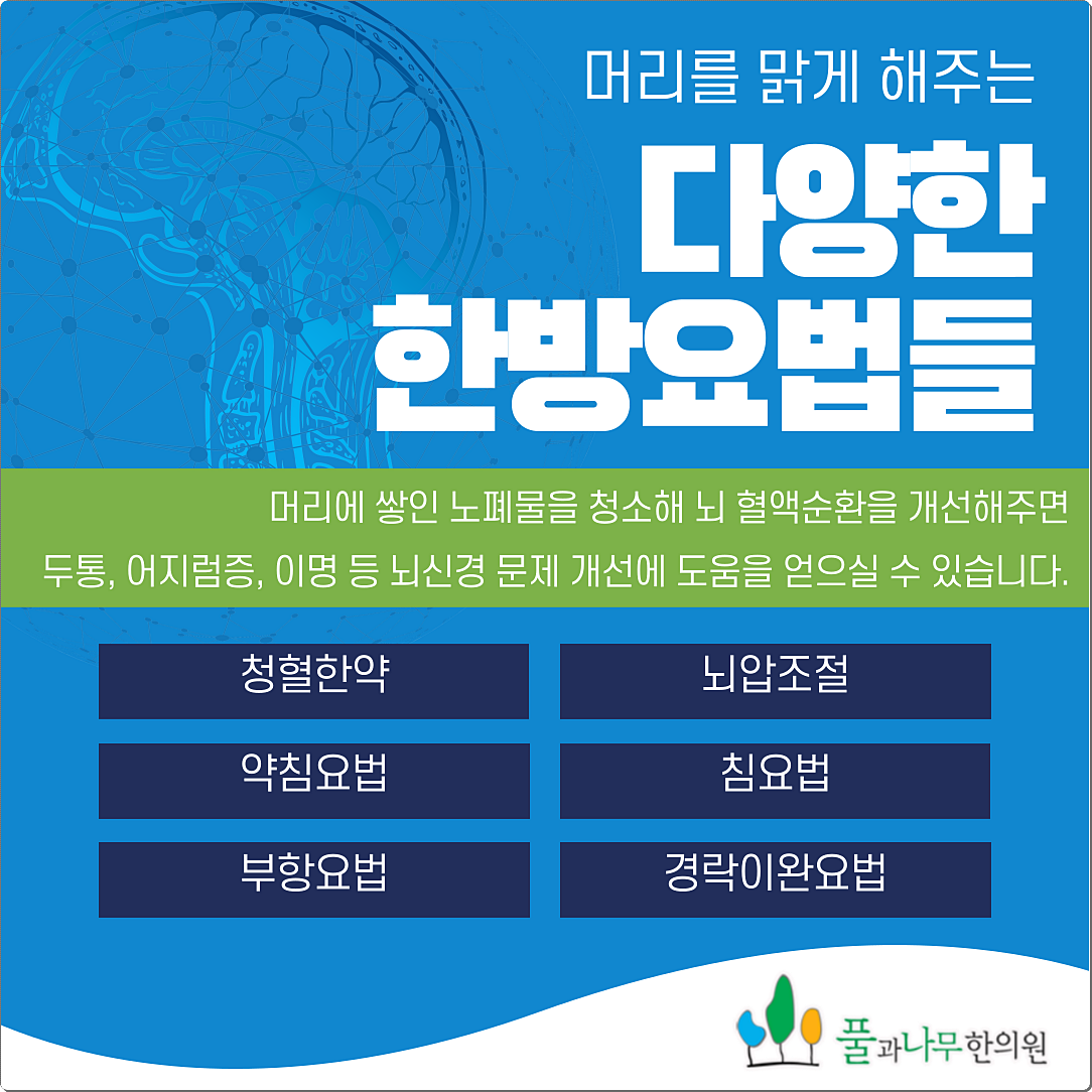 한의학적 치료는 부족한 혈을 보충하고 뇌로 가는 순환을 강화하는 방향으로 진행됩니다.