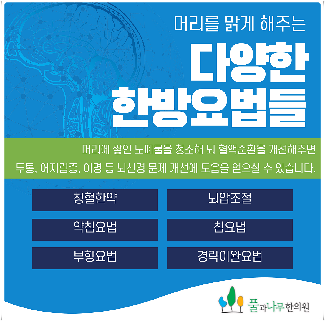 문제의 피로물질을 제거하고 뇌혈액순환의 안정을 위해 한방에서는 맞춤형 치료법들을 활용하고 있습니다.